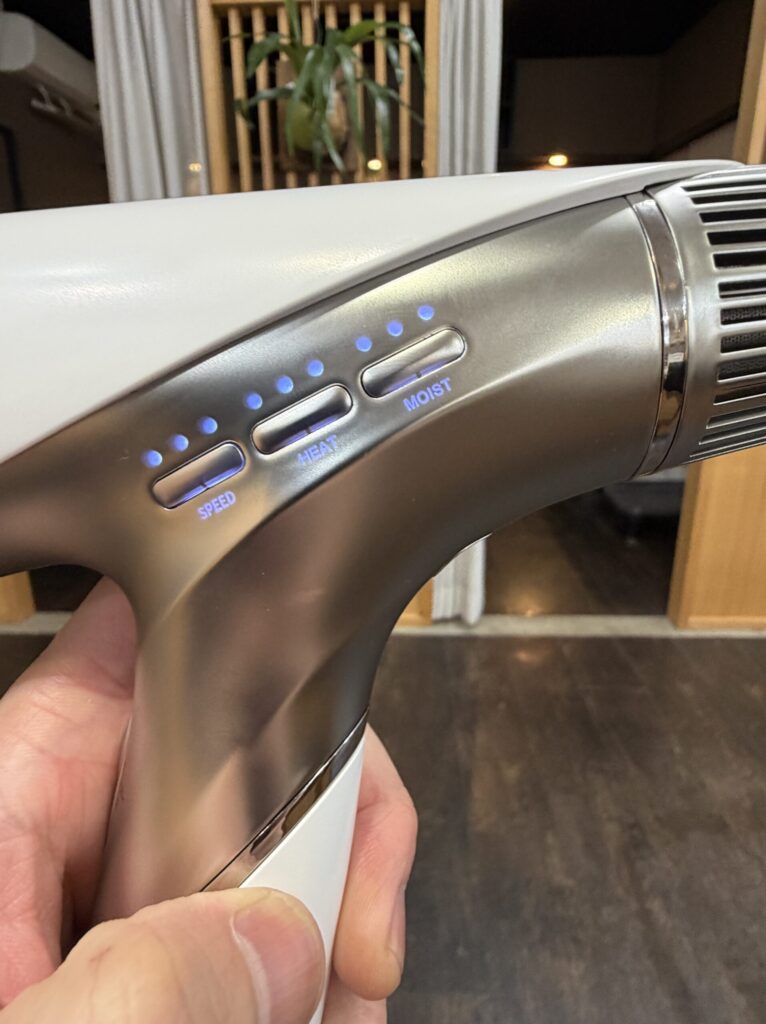 SPEEDで風量・HEATで温度・MOISTでしっとり感の調整が可能
